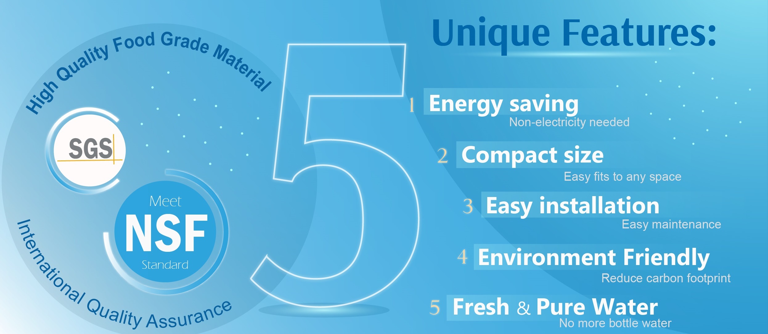 * NSF and SGS Material Certified: All Filter Housing and Filter Media tested by NSF or SGS that meet food grade requirements and standards