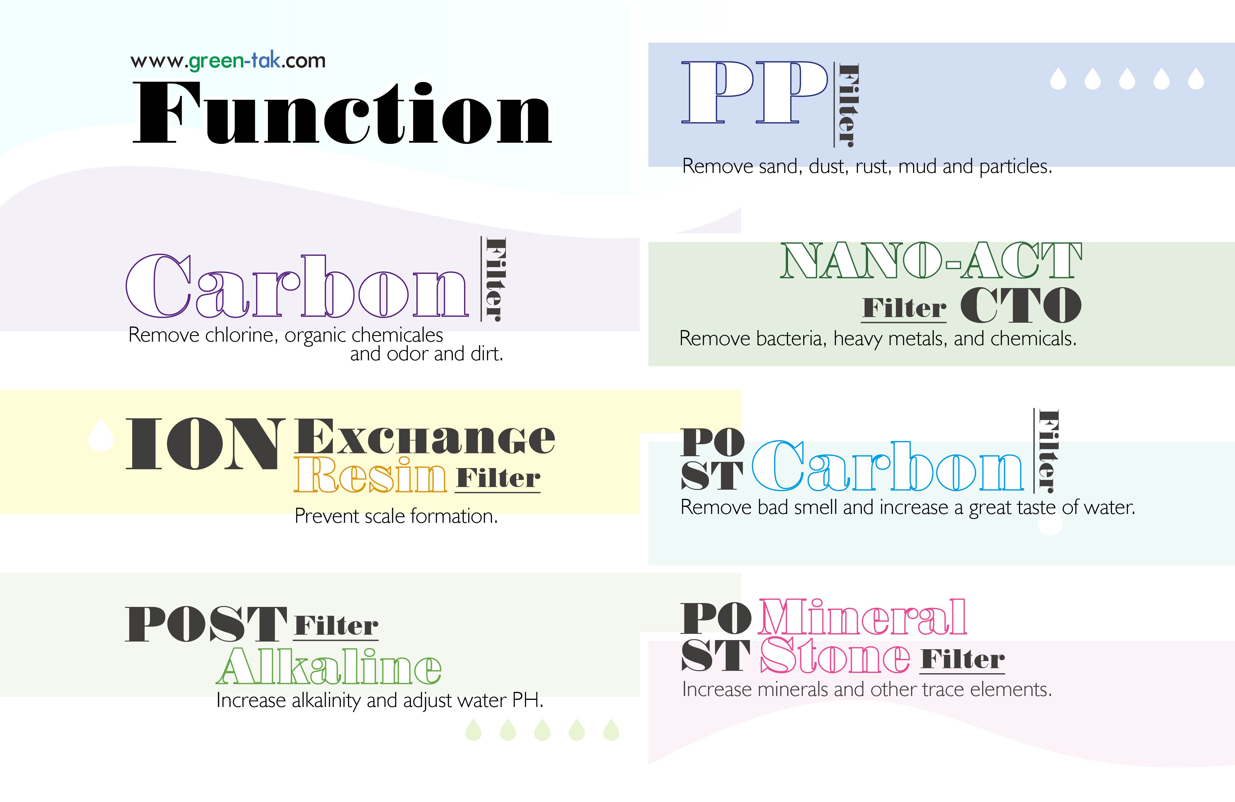 Quick change disposable NANO-ACT water filters can remove 99% of bacteria and heavy metals such as lead, mercury, chromium, cadmium, etc.